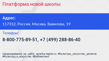 Платформа новой школы по адресу 117312, Россия, Москва, Вавилова, 19 в дальнейшем Организация, размещена в следующих категориях: