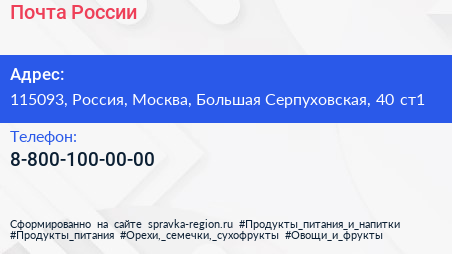 Почта России по адресу 115093, Россия, Москва, Большая Серпуховская, 40 ст1 в дальнейшем Организация, размещена в следующих категориях: