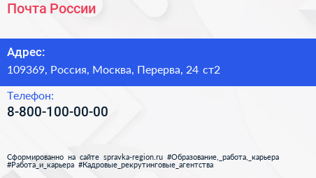 Почта России по адресу 109369, Россия, Москва, Перерва, 24 ст2 в дальнейшем Организация, размещена в следующих категориях: