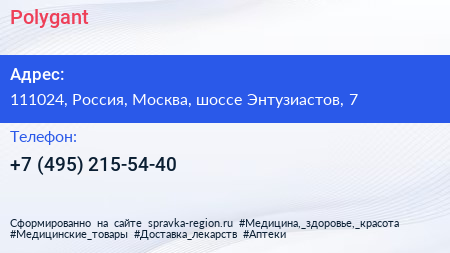 Polygant по адресу 111024, Россия, Москва, шоссе Энтузиастов, 7 в дальнейшем Организация, размещена в следующих категориях: