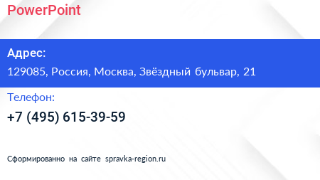 PowerPoint по адресу 129085, Россия, Москва, Звёздный бульвар, 21 в дальнейшем Организация, размещена в следующих категориях: