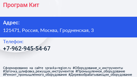 Програм Кит по адресу 121471, Россия, Москва, Гродненская, 3 в дальнейшем Организация, размещена в следующих категориях: