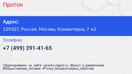 Протон+ по адресу 129327, Россия, Москва, Коминтерна, 7 к2 в дальнейшем Организация, размещена в следующих категориях: