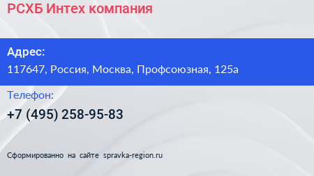 РСХБ-Интех, компания по адресу 117647, Россия, Москва, Профсоюзная, 125а в дальнейшем Организация, размещена в следующих категориях: