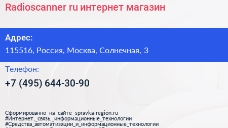 Radioscanner.ru, интернет-магазин по адресу 115516, Россия, Москва, Солнечная, 3 в дальнейшем Организация, размещена в следующих категориях: