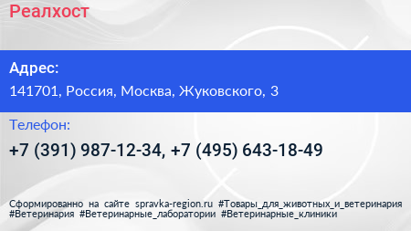 Реалхост по адресу 141701, Россия, Москва, Жуковского, 3 в дальнейшем Организация, размещена в следующих категориях: