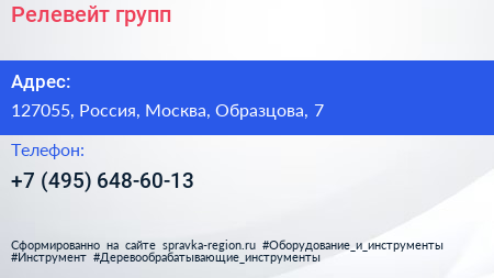 Релевейт групп по адресу 127055, Россия, Москва, Образцова, 7 в дальнейшем Организация, размещена в следующих категориях: