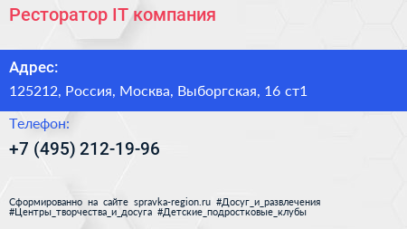 Ресторатор, IT-компания по адресу 125212, Россия, Москва, Выборгская, 16 ст1 в дальнейшем Организация, размещена в следующих категориях: