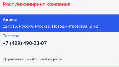РостИнжиниринг, компания по адресу 127015, Россия, Москва, Новодмитровская, 2 к2 в дальнейшем Организация, размещена в следующих категориях:
