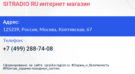 SITRADIO.RU, интернет-магазин по адресу 125239, Россия, Москва, Коптевская, 67 в дальнейшем Организация, размещена в следующих категориях: