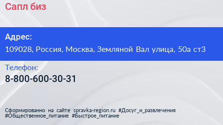 Сапл-биз по адресу 109028, Россия, Москва, Земляной Вал улица, 50а ст3 в дальнейшем Организация, размещена в следующих категориях: