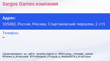 Sargos Games, компания по адресу 105082, Россия, Москва, Спартаковский переулок, 2 ст1 в дальнейшем Организация, размещена в следующих категориях: