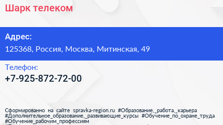 Шарк-телеком по адресу 125368, Россия, Москва, Митинская, 49 в дальнейшем Организация, размещена в следующих категориях: