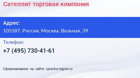Сателлит, торговая компания по адресу 105187, Россия, Москва, Вольная, 39 в дальнейшем Организация, размещена в следующих категориях: