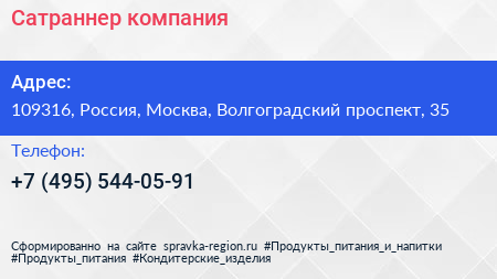 Сатраннер, компания по адресу 109316, Россия, Москва, Волгоградский проспект, 35 в дальнейшем Организация, размещена в следующих категориях: