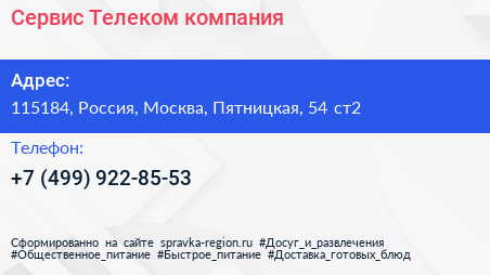 Сервис-Телеком, компания по адресу 115184, Россия, Москва, Пятницкая, 54 ст2 в дальнейшем Организация, размещена в следующих категориях: