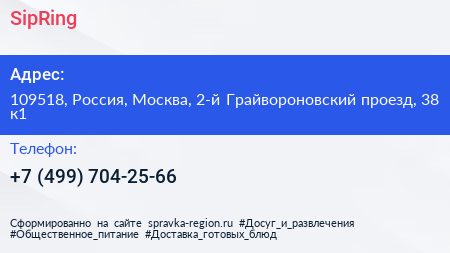 SipRing по адресу 109518, Россия, Москва, 2-й Грайвороновский проезд, 38 к1 в дальнейшем Организация, размещена в следующих категориях: