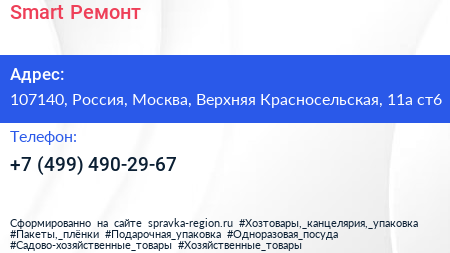 Smart Ремонт по адресу 107140, Россия, Москва, Верхняя Красносельская, 11а ст6 в дальнейшем Организация, размещена в следующих категориях: