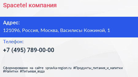Spacetel, компания по адресу 121096, Россия, Москва, Василисы Кожиной, 1 в дальнейшем Организация, размещена в следующих категориях:
