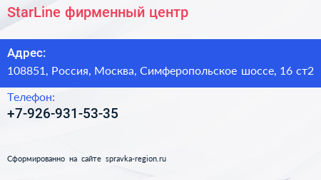 StarLine, фирменный центр по адресу 108851, Россия, Москва, Симферопольское шоссе, 16 ст2 в дальнейшем Организация, размещена в следующих категориях: