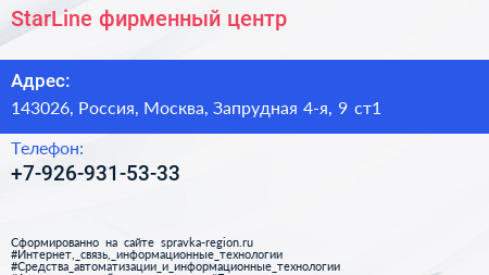 StarLine, фирменный центр по адресу 143026, Россия, Москва, Запрудная 4-я, 9 ст1 в дальнейшем Организация, размещена в следующих категориях: