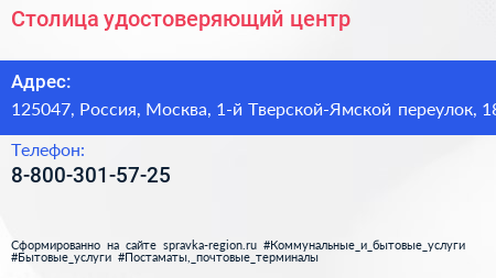 Столица, удостоверяющий центр по адресу 125047, Россия, Москва, 1-й Тверской-Ямской переулок, 18 в дальнейшем Организация, размещена в следующих категориях: