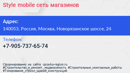Style mobile, сеть магазинов по адресу 140053, Россия, Москва, Новорязанское шоссе, 24 в дальнейшем Организация, размещена в следующих категориях: