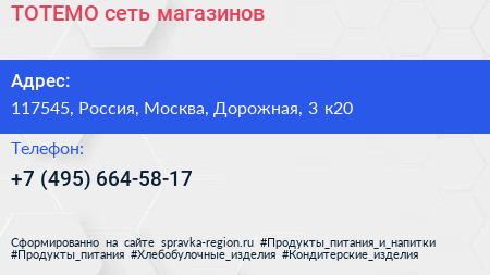 ТОТЕМО, сеть магазинов по адресу 117545, Россия, Москва, Дорожная, 3 к20 в дальнейшем Организация, размещена в следующих категориях:
