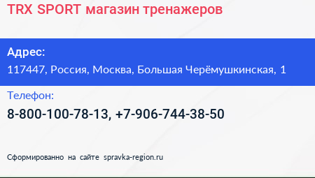 TRX SPORT, магазин тренажеров по адресу 117447, Россия, Москва, Большая Черёмушкинская, 1 в дальнейшем Организация, размещена в следующих категориях: