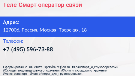 Теле-Смарт, оператор связи по адресу 127006, Россия, Москва, Тверская, 18 в дальнейшем Организация, размещена в следующих категориях: