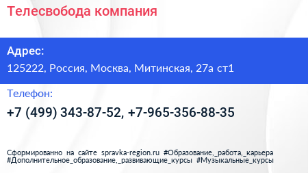 Телесвобода, компания по адресу 125222, Россия, Москва, Митинская, 27а ст1 в дальнейшем Организация, размещена в следующих категориях: