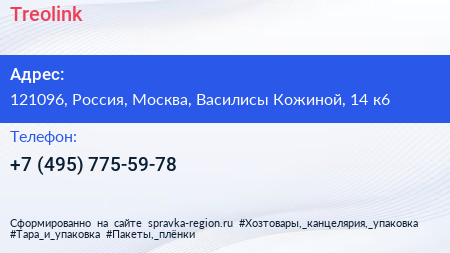 Treolink по адресу 121096, Россия, Москва, Василисы Кожиной, 14 к6 в дальнейшем Организация, размещена в следующих категориях: