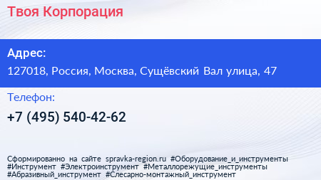 Твоя Корпорация по адресу 127018, Россия, Москва, Сущёвский Вал улица, 47 в дальнейшем Организация, размещена в следующих категориях: