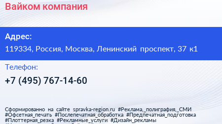 Вайком, компания по адресу 119334, Россия, Москва, Ленинский проспект, 37 к1 в дальнейшем Организация, размещена в следующих категориях: