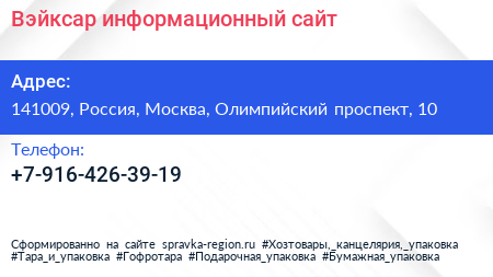 Вэйксар, информационный сайт по адресу 141009, Россия, Москва, Олимпийский проспект, 10 в дальнейшем Организация, размещена в следующих категориях: