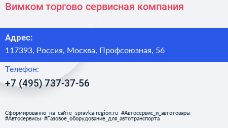 Вимком, торгово-сервисная компания по адресу 117393, Россия, Москва, Профсоюзная, 56 в дальнейшем Организация, размещена в следующих категориях: