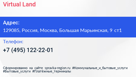 Virtual Land по адресу 129085, Россия, Москва, Большая Марьинская, 9 ст1 в дальнейшем Организация, размещена в следующих категориях: