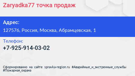 Zaryadka77, точка продаж по адресу 127576, Россия, Москва, Абрамцевская, 1 в дальнейшем Организация, размещена в следующих категориях: