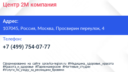 Центр 2М, компания по адресу 107045, Россия, Москва, Просвирин переулок, 4 в дальнейшем Организация, размещена в следующих категориях: