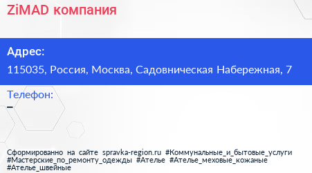 ZiMAD, компания по адресу 115035, Россия, Москва, Садовническая Набережная, 7 в дальнейшем Организация, размещена в следующих категориях: