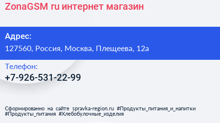 ZonaGSM.ru, интернет-магазин по адресу 127560, Россия, Москва, Плещеева, 12а в дальнейшем Организация, размещена в следующих категориях: