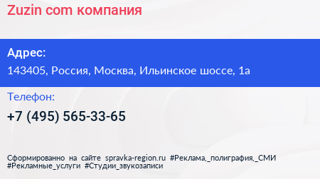 Zuzin.com, компания по адресу 143405, Россия, Москва, Ильинское шоссе, 1а в дальнейшем Организация, размещена в следующих категориях: