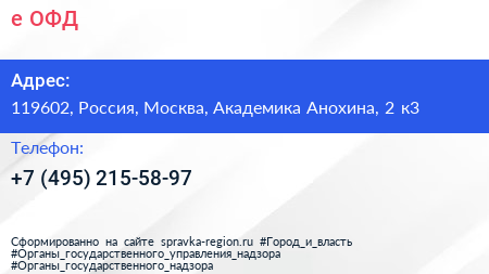 е-ОФД по адресу 119602, Россия, Москва, Академика Анохина, 2 к3 в дальнейшем Организация, размещена в следующих категориях: