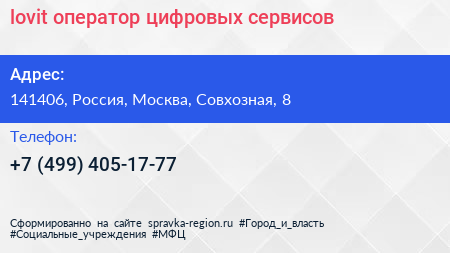 lovit)), оператор цифровых сервисов по адресу 141406, Россия, Москва, Совхозная, 8 в дальнейшем Организация, размещена в следующих категориях: