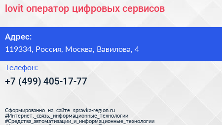 lovit)), оператор цифровых сервисов по адресу 119334, Россия, Москва, Вавилова, 4 в дальнейшем Организация, размещена в следующих категориях: