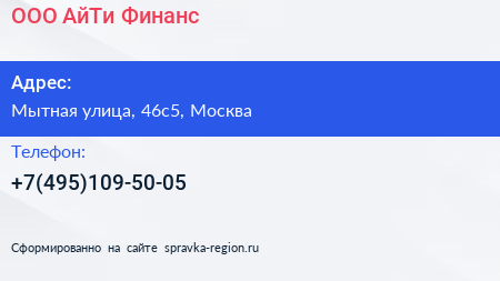 ООО «АйТи Финанс» по адресу Мытная улица, 46с5, Москва в дальнейшем Организация, размещена в следующих категориях: