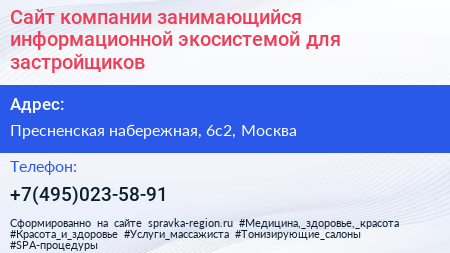 Сайт компании занимающийся информационной экосистемой для застройщиков по адресу Пресненская набережная, 6с2, Москва в дальнейшем Организация, размещена в следующих категориях: