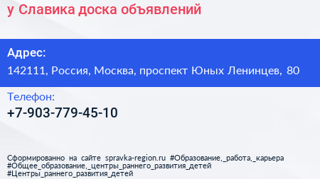 у Славика, доска объявлений по адресу 142111, Россия, Москва, проспект Юных Ленинцев, 80 в дальнейшем Организация, размещена в следующих категориях: