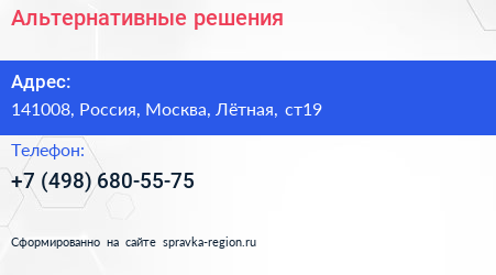 Альтернативные решения по адресу 141008, Россия, Москва, Лётная, ст19 в дальнейшем Организация, размещена в следующих категориях: