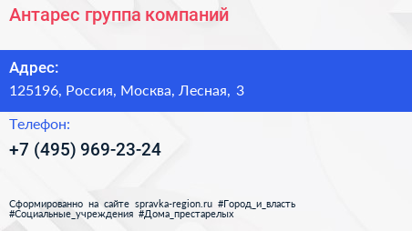 Антарес, группа компаний по адресу 125196, Россия, Москва, Лесная, 3 в дальнейшем Организация, размещена в следующих категориях: